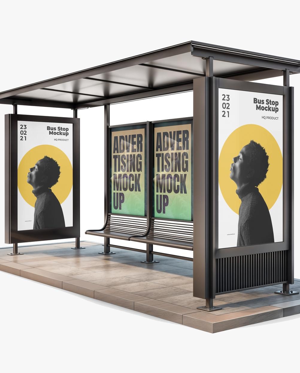 Mockup Painel Publicitário Ponto de Ônibus - Mockup PSD Mockups de Veículos Editável Mockup Painel Publicitário Pon...