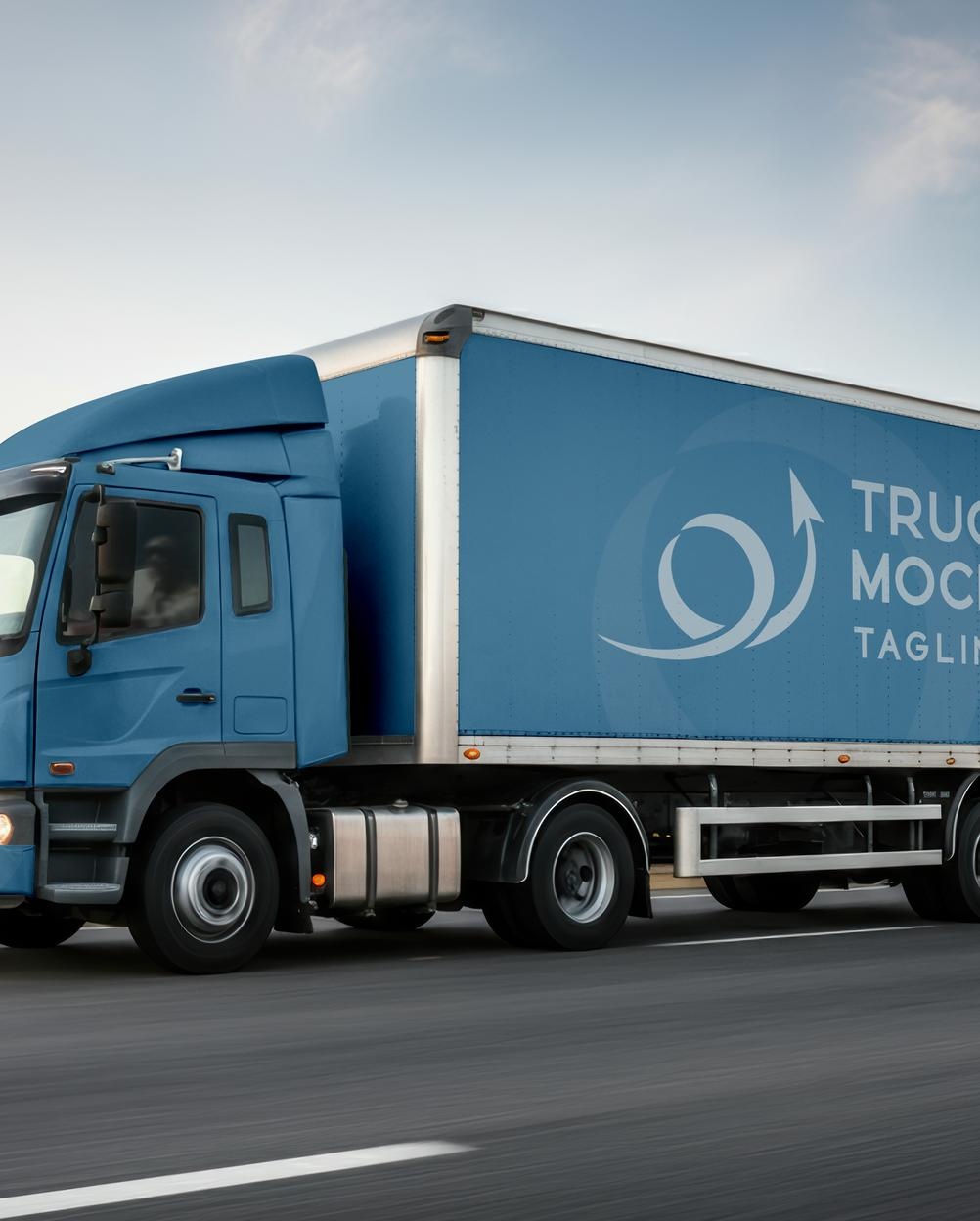 Mockup Caminhão Publicitário Estrada - Mockup PSD Mockups de Veículos Editável Mockup Caminhão Publicitário E...